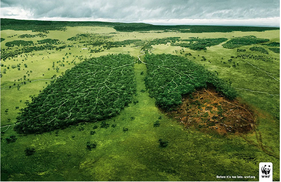 In the 1960s Volkswagen did a "Think Small" campaign, that emphasized the advantages of driving a smaller car. It was humorous and conveyed its message directly. An additional example is WWF's minimalist print ads that created negative space and stark imagery to raise awareness of environmental issues, such as endangered species and deforestation.